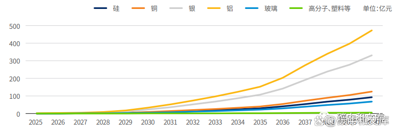 2025-2040年各材料累计回收价值预测