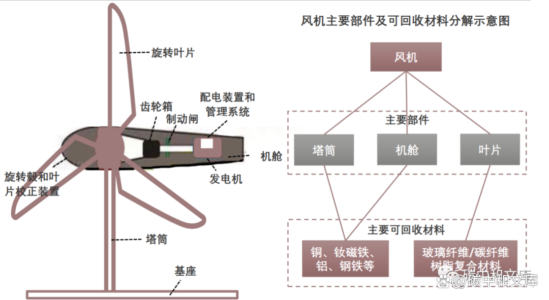 2)1400亿风电组件回收市场:从风电机组和配套设施的主要材料构成看,风机的机舱、塔筒、叶片等部件包括了铜、钢、水泥、碳纤维/玻璃纤维等材料,在风机退役后均具有回收价值;到2023年,风电累计价值将达到150亿元,到2040年,累计可回收价值高达1400亿元。