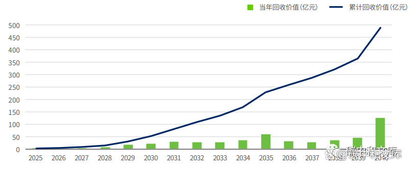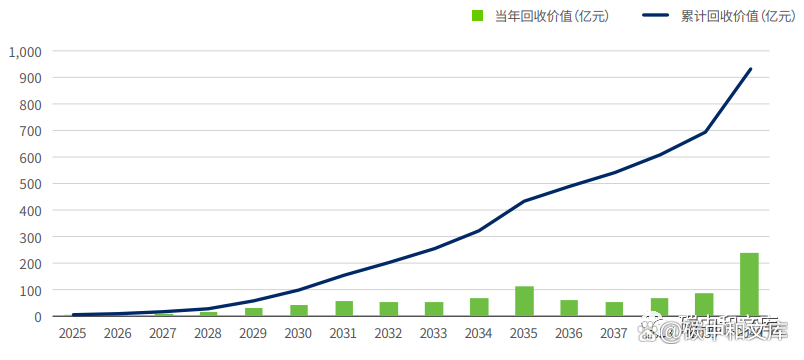 2025-2040年待回收价值及累计回收价值预测