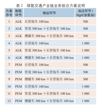 (1)绿氢交通是指用氢燃料电池汽车替代燃油车,在远期或是特定场景下替代电动车,助力交通领域的碳中和进程。该文所指绿氢交通产业链,是从可再生能源制氢到加注到燃料电池汽车,包括制取、储运、加注3个环节。